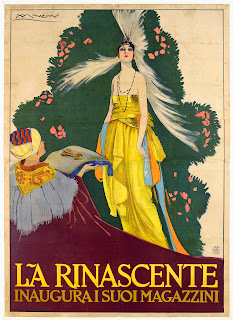 Prima della creazione del “made in Italy”, negli anni ’50 del ‘900, esisteva già una rodata pubblicità di moda in Italia? Sì - risponde Paulicelli dalla sua casa negli Stati Uniti - infatti nell’esposizione si possono osservare le radici del marchio Italia e come l’Italia elaborasse la sua identità complessa e multipla. E come questa si formasse attraverso processi di modernizzazione, che si concretizzavano nelle astute ed elaborate campagne pubblicitarie. Queste forme di comunicazione si sviluppano parallelamente alle arti, al saper fare artigianale e alla formazione di una classe imprenditoriale e industriale, come mostrano le esperienze della Rinascente, di Mele, dei magazzini Zingone a Roma. Sono anche i grandi magazzini a innescare le novità della moda e della confezione in serie, che man mano si svilupperà con gli anni a venire. È nei grandi magazzini che già alla fine dell’Ottocento comincia il “ready to wear”.
